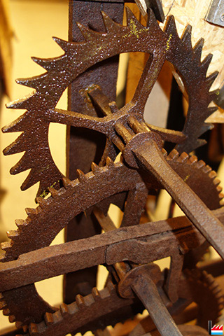 Altes schmiedeisernes Straus - Kirchturmuhrwerk aus der Kirche von
