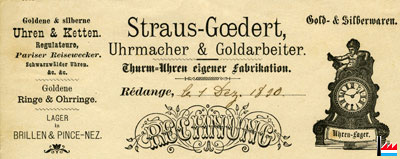 | 1914-18 | ![]() Prosper Straus, Horlogier - Bijoutier, Redange (Collection: Renée Peschon-Demuth; Scan; Romain Gaspar) |