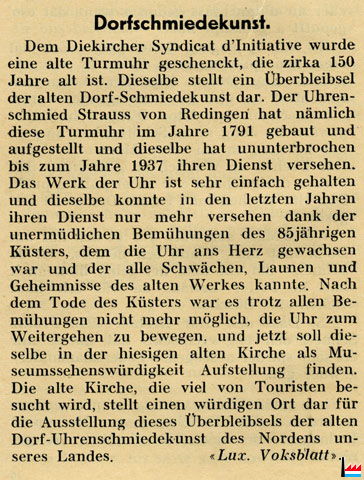 | 1791 | Turmuhr Diekirch Uhrenschmied - Uhrenmacher Strauss, Redingen |