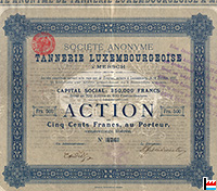 Action de 500 FR de la S.A. TANNERIE LUXEMBOURGEOISE A MERSCH - 1897 (Collection: industrie.lu)