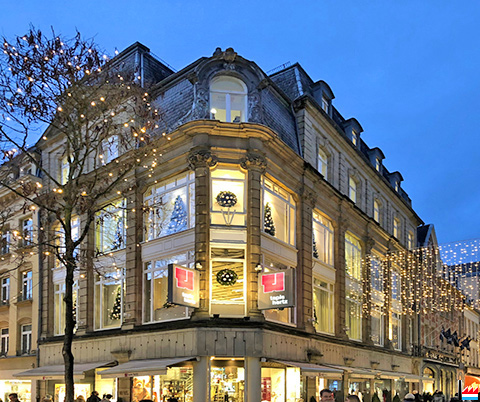 | 1946 | De retour des États-Unis, Rodolphe et Emilie HERTZ ouvrent sous l’enseigne de « Rodolphe HERTZ », un commerce de tapis et rideaux au premier étage de l’immeuble situé au 9, Grand’Rue à Luxembourg. |