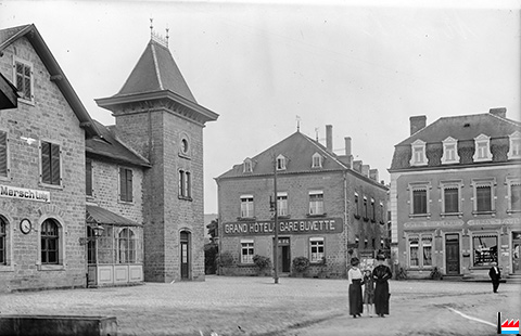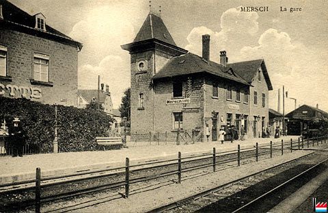![]() Gare de Mersch - Grand Hôtel de la Buvette - Papeterie, Tabacs & Cigares Teisen - Binsfeld (Archives: Nico Lucas) |