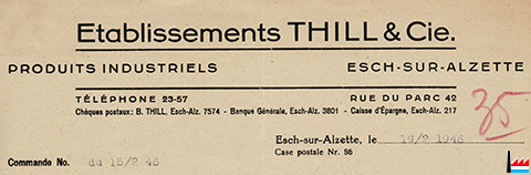 | <=1946 | ![]() Etablissements Thill & Cie, Esch/Alzette 42 rue du Parc (Collection: industrie.lu) Tél: 2357 B. (?)Thill |