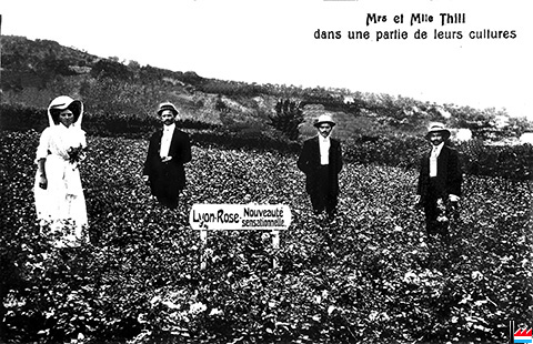 "Lyon rose" - Nouveauté sensationnelle - Mrs et Mlle Thill dans une partie de leurs cultures