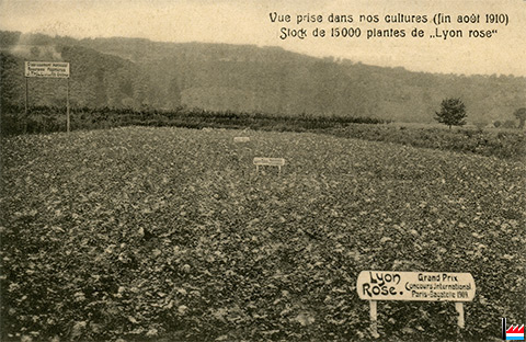 Vue prise dans nos cultures (fin août 1910 - Stock de 15.000 plantes de "Lyon rose"