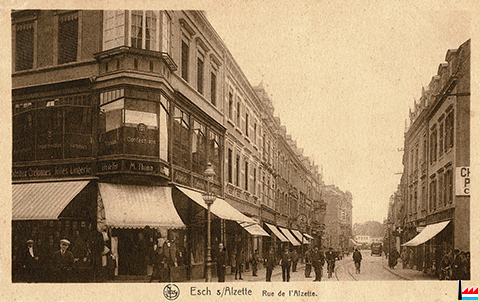 | ? - ? | ![]() Thoma frères, Esch/Alzette, rue de l'Alzette (Carte postale: M. Maroldt, 10 rue de la Poste, Esch/Alzette; Collection: industrie.lu) Stoffel J., Esch/Alzette, (28) rue de l'Alzette (coin) tailleur pour hommes et dames |