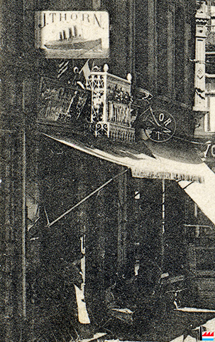 | 9.1908 | Une grande photographie exposée dans la vitrine de la maison de cycles Thorn, avenue de la Gare à Luxembourg, nous montre l’aéroplane Wright sur un camion automobile et MM. Vincent Wiesenbach et Wilbur Wright installés sur les sièges de la voiture. Nous recherchons cette photo, un grand merci d'avance pour toute aide! - We are looking for this picture, many thanks in advance for any help! wanted@industrie.lu |