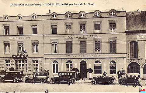 Diekirch en face de la Gare - L'Hôtel du Midi (Carte postale: Editeur: R. Tippmann, Diekirch)