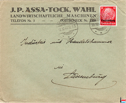 J. P. Assa - Tock, Wahl - Briefumschlag 10.12.1940 (Collection: Laurent Weiler, Wahl)
