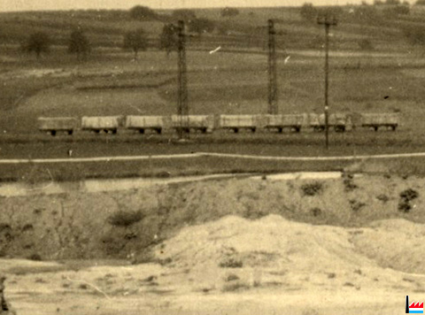 ![]() Mit Lehm gefüllte Feldbahnloren - Eimerkettenbagger - Feldbahnlok (Sammlung: Wilhelm Schommer) |