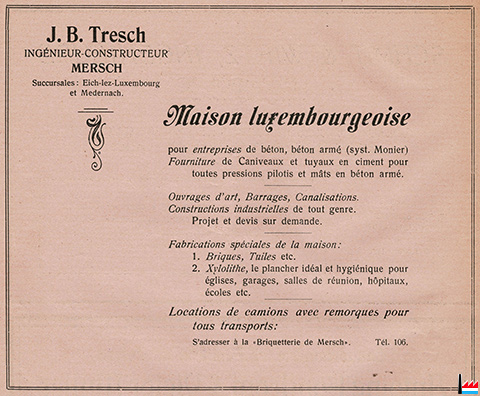 | <=1935 | Tresch Jean-Baptiste, ing., Mersch, Tél. 106, entrepreneur | ||