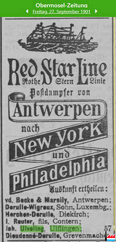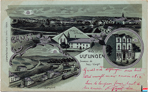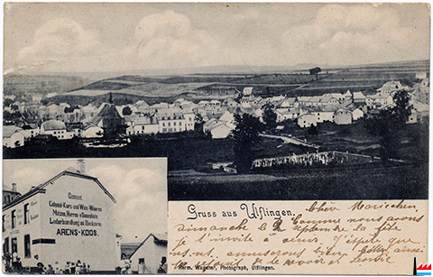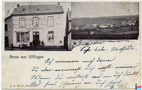 | 9.1904 | Ulflingen. 7. Sept. 1904 - Das Konsumgeschäft, das hier der Verein der Eisenbahnbeamten für seine Mitglieder errichtet hat, geht außerordentlich gut. Die Laienbrüder von Fünfbrunnen haben das hiesige geräumige Haus des Hrn. Gillen angekauft: man spricht davon, als seien sie entschlossen, darin Werkstätten einzurichten für Handwerker jeder Art, die ihre Kongregation liefern soll. Dies und das Konsumqeschäft sind Pläne, von denen die hiesigen Geschäftsleute nicht sehr erbaut sind. (OMZ: 13.9.1904) |