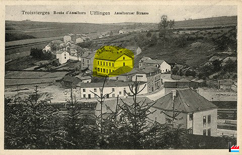 Dat Haus war well fréi ofgerappt (an den 20er ass et net méi op de Postkaarten drop) Haut ass do een Eck Wues, e puer Beem a Parkplazen ongeféier vis-à-vis vun Haus No 7 rue d‘Asselborn L-9907 Troisvierges