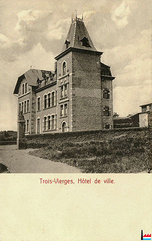 ![]() Troisvierges - Hôtel de ville - 1.1914 (Carte postale: Herm. Wagener, photographe, Trois-Vierges; Collection industrie.lu) |