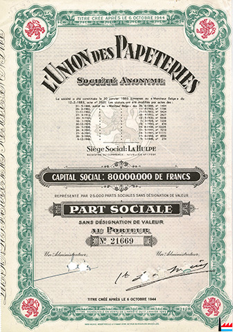 | ? | Reprise de la Société de l'Union des Papeteries du Prince et du Pont d'Oye, Habaye-la-Neuve par l' Union des Papeteries |