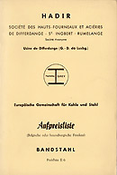 HADIR - Société des Hauts-Fourneaux et Aciéries de Differdange, St. Ingbert, Rumelange Europäische Gemeinschaft für Kohle und Stahl Aufpreisliste Bandstahl |