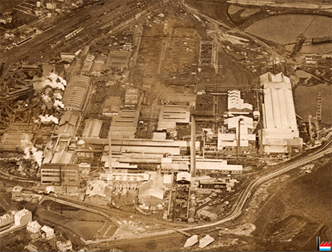 1005, au fond les hauts-fourneaux de HADIR en novembre 1950 (Photo: