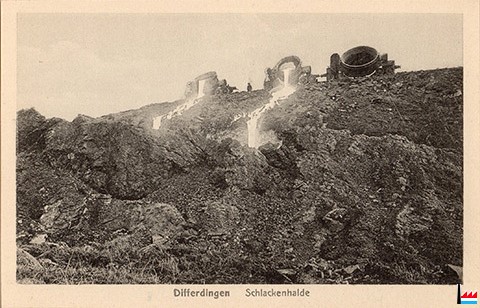 Hütte Differdingen - Schlackenhalde (Carte postale: Verlag Ch. Grieser, Hofphotograph, Luxemburg, 1916; collection: industrie.lu)