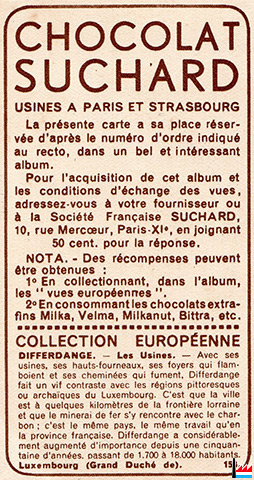 | <= 8.1903 | ![]() Differdingen, Die Hochöfen - <= 8.1903 (Détail de la carte postale: J.M. Bellwald, Echternach, No 244; collection: industrie.lu) ![]() Differdingen, Die Hochöfen - Tabac & Cigares Vve Reuter, Differdange (Carte postale: J.M. Bellwald, Echternach, No 244; collection: industrie.lu) |