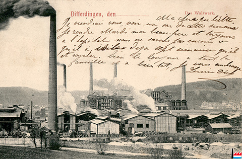 Hüttenwerk Differdingen (Carte postale: Verlag Ch. Grieser, Hofphotograph, Luxemburg, 1916; collection: industrie.lu)