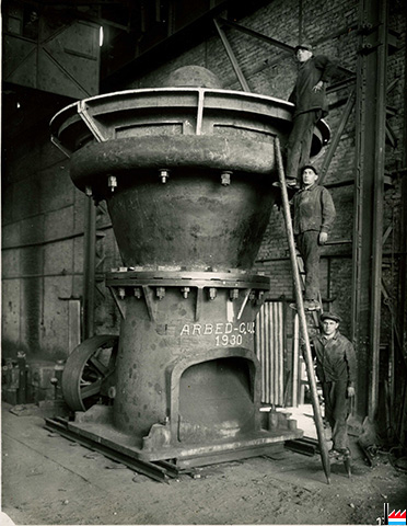 S.A. des Carrières unies de porphyre de Lessines; Concasseur giratoire ARBED Dommeldange CG 75 - 1930 (Photo N° 1746 ADO; collection: industrie.lu)