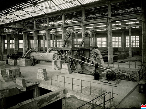 Société Belge d'Electrochimie, Langerbrugge: installation de broyage du carbure ARBED Dommeldange (Photo collection: industrie.lu)