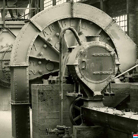 Société Belge d'Electrochimie, Langerbrugge: Broyeur à boulets ARBED Dommeldange BB 265 pour le broyage de la cyanamide (Photo collection: industrie.lu)
