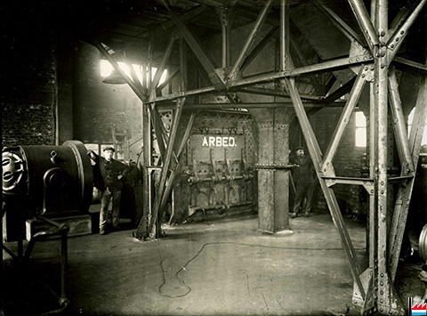 Société Belge d'Electrochimie, Langerbrugge: Concasseur à mâchoires ARBED Dommeldange CMR 85 pour le débitage des pains de carbure (Photo collection: industrie.lu)