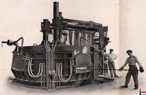 | 1929 | Das erste Elektrostahlwerk stellt den Betrieb ein Inbetriebnahme eines Lichtbogenofens Typ Heroult mit 3 Elektroden und einem Fassungsvermögen von 8 t (später 10 t) |