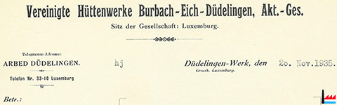 21.11.1935 - Vereinigte Hüttenwerke Burbach-Eich-Düdelingen, Akt. - Ges. - Arbed Düdelingen - Papier à lettre à entête - Archives Camille Aschman Jr. - Collection famille Aschman-Bodson.