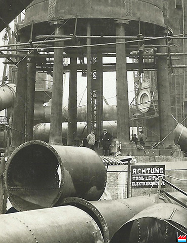 Ein im Bau begriffener neuer Hochofen des Düdelinger Hüttenwerkes. aus: Daten aus der luxemburgischen Eisenindustrie n° XIII. - Zusammengestellt von Camille Aschman (A-Z, 1935) - Collection famille Aschman-Bodson