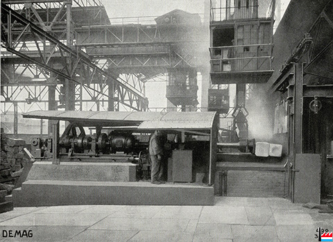 5 enfourneuses de lingots, livrées à ARBED - Dudelange (Catalogue: Le laminoir - DEMAG, Duisburg, 1918; collection: Philippe Aschman)