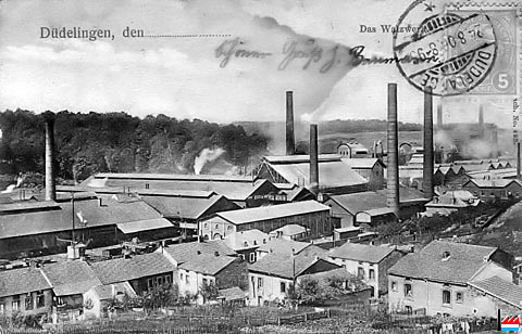 Düdelingen - Das Walzwerk, um 1906 (Carte postale: Bellwald; collection: Emile van der Vekene)