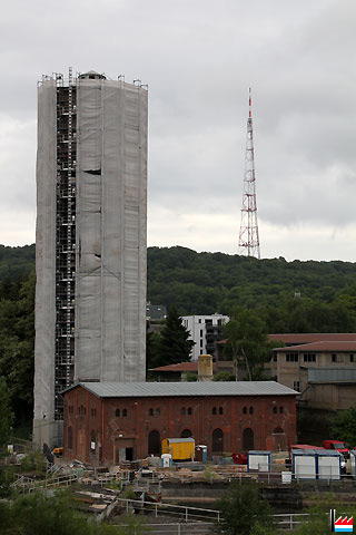 Le château d'eau d'ARBED-Dudelange (Photos: 25.4.2009 jmo) à droite: (Photo: 27.5.2011 jmo)