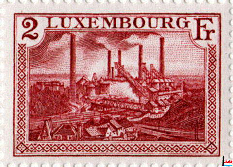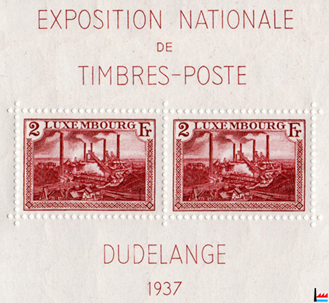 Timbre de 2 Fr de l'Usine de Dudelange - Exposition nationale de timbres-poste - Dudelange - 1937