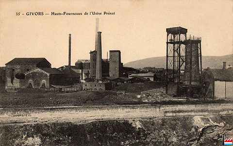 Givors - Les hauts-fourneaux de l'Usine Prénat (Carte postale: Collection: industrie.lu)