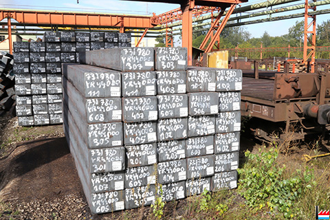 Blooms (Stahlblöcke) d'Arcelor Mittal Ru (Ruhrort) à l'Usine de Rodange (Photo: 16.9.2017 jmo)