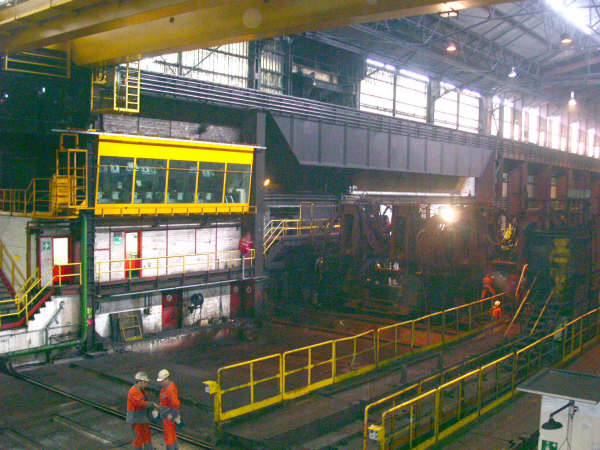 La batterie de fours Pits 8 cellules de 45 t et 2 cellules de 60 t chauffées au gaz mixte: gaz de haut fourneau et gaz naturel. |