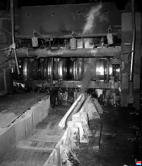 | 1949-50 | Dans le cadre du plan Marshall, aménagement du train Morgan, le train de 350-300 mm est doté d’un équipement complémentaire, 6 cages Duo pour le laminage du fil, diamètre 5,5-10 mm et un train de feuillards | ||||||
