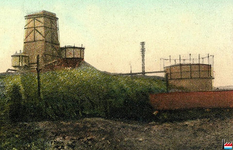 Aachener Hütte, Esch/Alzette - Kühlapparate - Gasometer <= 3.1913 (Carte postale: H.G. & Co., Z. No. 7437 a Dép. - Kremer-Müller, Pap. Esch s/A.; Collection: industrie.lu)