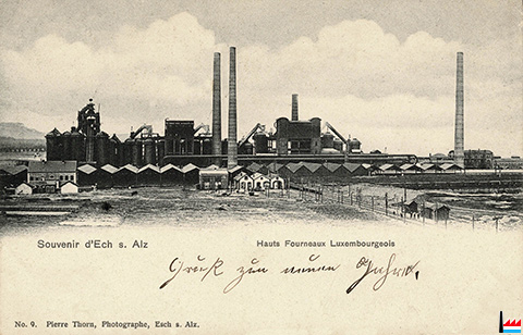Esch/Alzette - Hauts-Fourneaux Luxembourg - <=1904 (Carte postale: N° 9.Pierre Thorn, Esch/Alzette; collection: industrie.lu) |