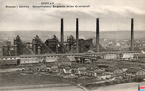 Esch an der Alzette - Brasseur's Schmelz - Gelsenkirchener Bergwerks Aktien Gesellschaft (Carte postale: E.A. Schoren, Photogr., Luxembourg-Gare, rue Bourbon 10; Collection: industrie.lu)