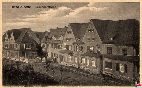 Schoellerstraße - rue Schoeller, depuis 1923 avenue des Terres-Rouges, Esch/Alzette (Carte postale: Manufacture de cartes P. Houstraas, Luxembourg, Rue des Augustins Nr. 15; Collection: industrie.lu)