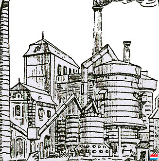 "Brasseurschmelz", Esch/Alzette - 1885 (Source: Anvers et L'Exposition Universelle 1885 par René Corneli et Pierre Mussely, Bruxelles 1886)