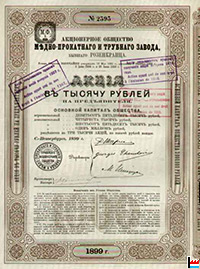 Société anonyme de l'Usine à cuivre et à tubes, ci-devant Rosenkrantz,Saint-Pétersbourg АО медно-прокатного и трубного завода, бывшего Розенкранца Aktiengesellschaft der Kupfer- und Röhrenwerke, vormals Rosenkrantz