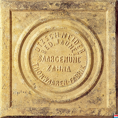 | 1906 | Utzschneider & Ed. Jaunez, Ton- und Mosaik-Plattenfabriken in Zahna (P. T. u. E.), Rgbz. Merseburg, Prov. Sachsen, Preussen. Fabrikat: Ton- und Mosaikplatten zu Fussbodenbelägen, gesintert glasierte Platten und Verblendplättchen zu Wandbekleidungen. |