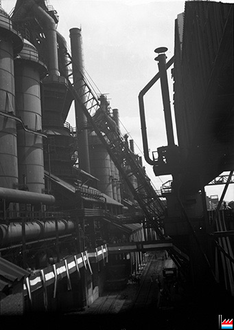 1947 - Ansicht Hochofen 5 von der Beschickungsseite (Photo - Glasplatte Nr. 7013: voestalpine AG)