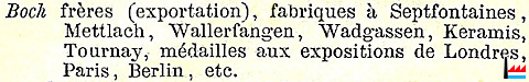 Faïenceries Boch frères à Septfontaines, Mettlach, Wallerfangen, Wadgassen, Keramis, Tournay - 1857