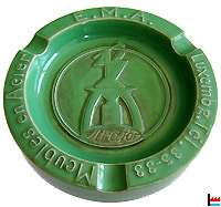 E.M.A. Meubles en Acier Luxembg. Tél. 35-33 Strafor (= Forges de Strasbourg) Cendrier publicitaire Villeroy et Boch N° de forme: 1069 N° de décor: 547 Datation: années 1950 Diamètre: 14 cm Hauteur: 2,5 cm (Collection Philippe Aschman) |