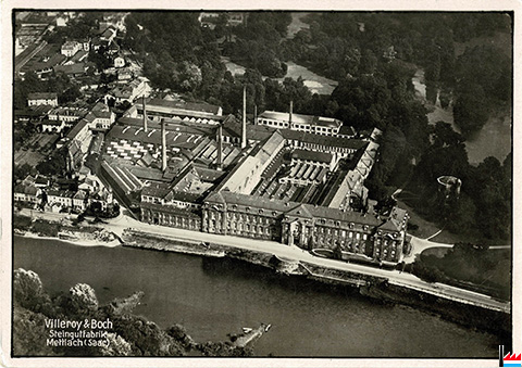 ![]() ![]() Steingutfabrik Mettlach (Postkarte: Aufnahme und Verlag Junkers - Luftbild-Zentrale, Leipzig; Collection: industrie.lu) |
